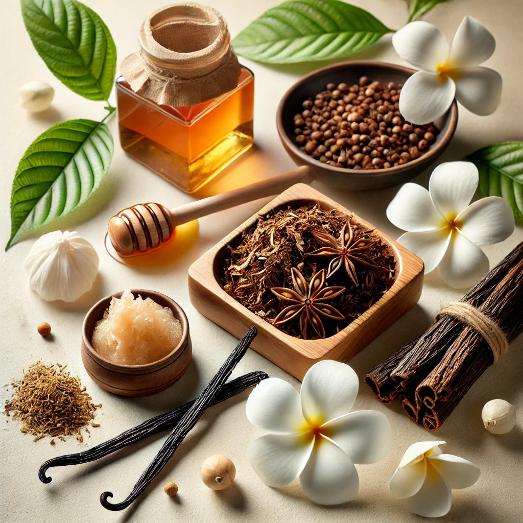 Lean into the warm embrace of cinnamon and tobacco, reminiscent of serene evenings spent in quiet reflection. Earthy teakwood adds depth and character, while delicate honey notes dance through the air, casting a soft, golden sweetness that invites relaxation and indulgence.